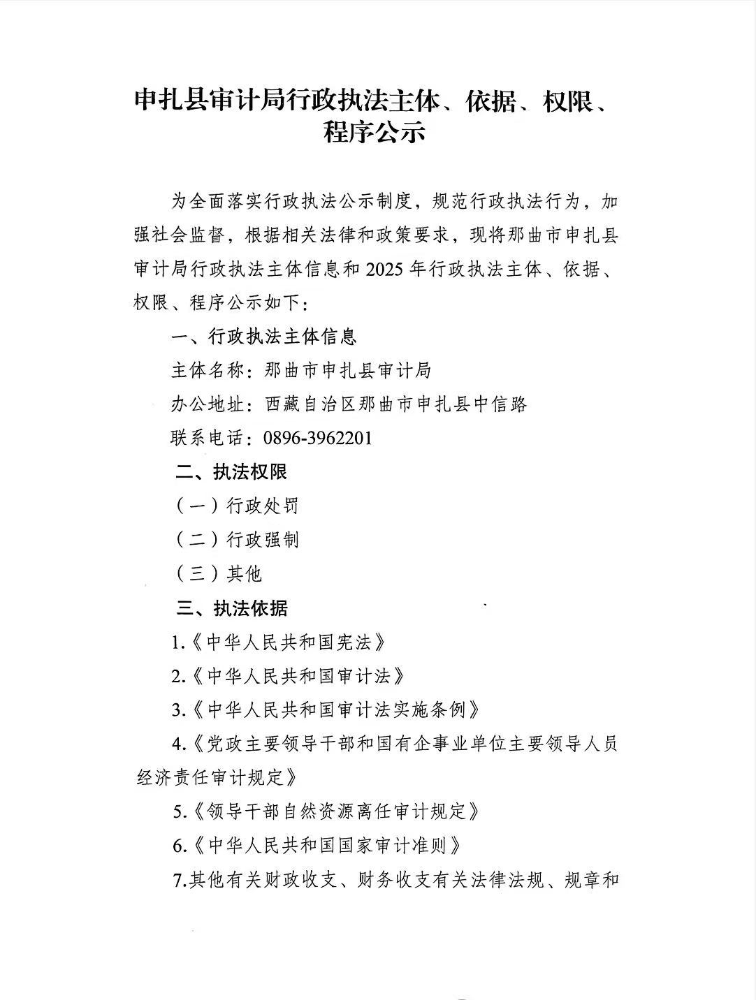 申扎县审计局行政执法主体、依据、权限、程序公示