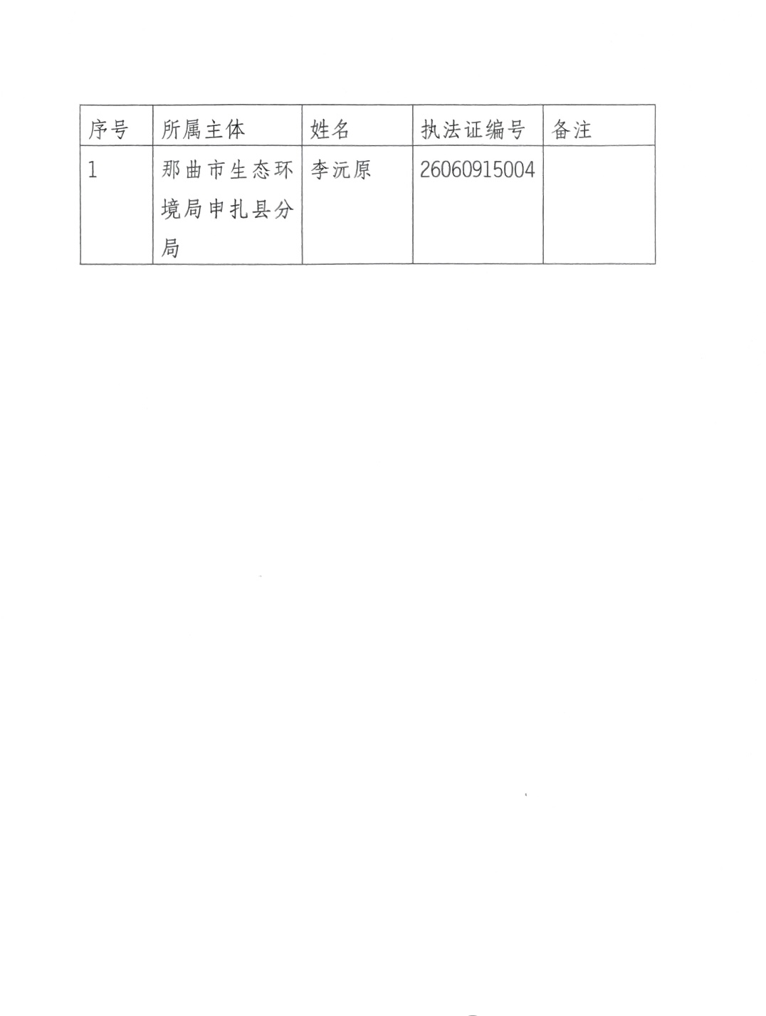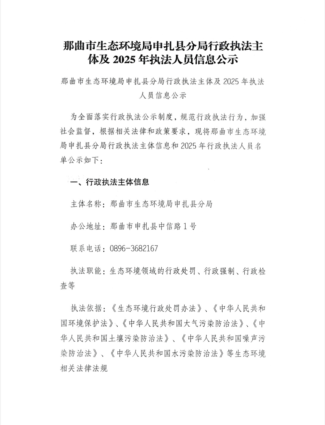 那曲市生态环境局申扎县分局行政执法主体及2025年执法人员信息公示