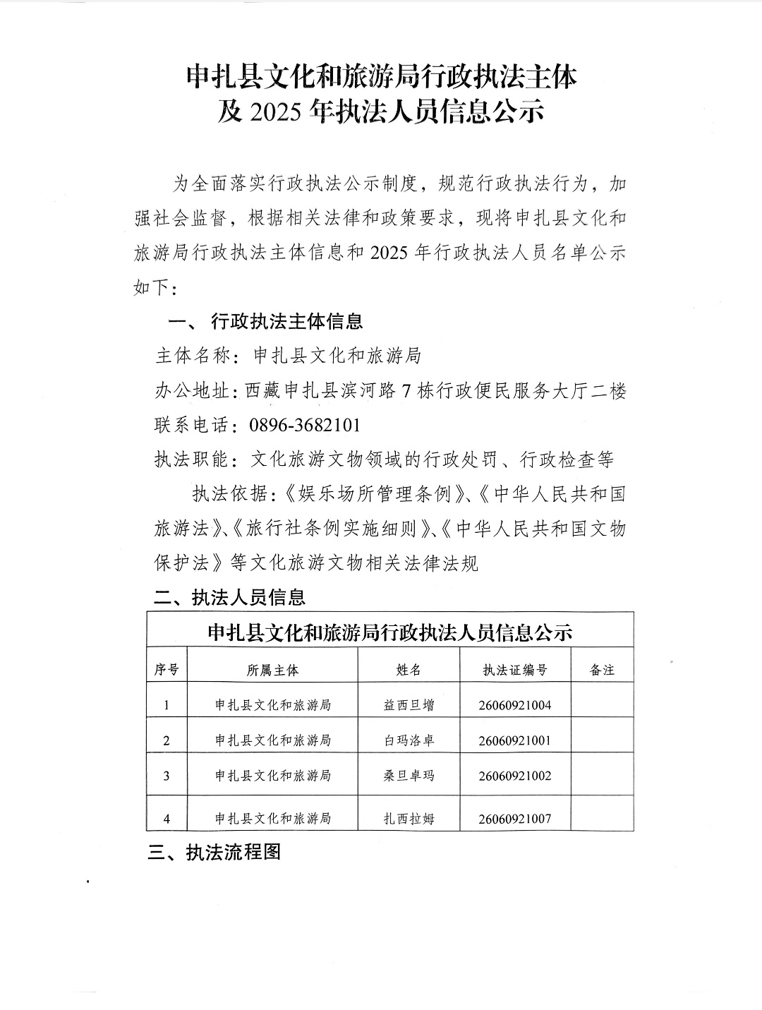 申扎县文化和旅游局行政执法主体及2025年执法人员信息公示