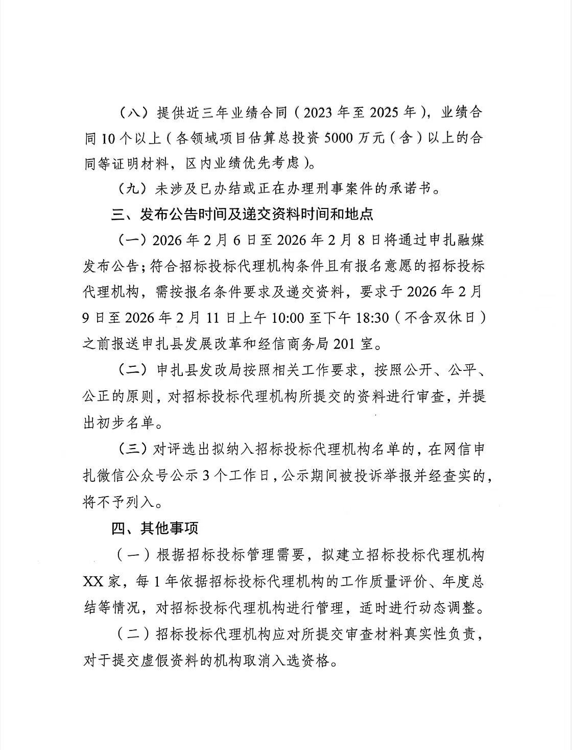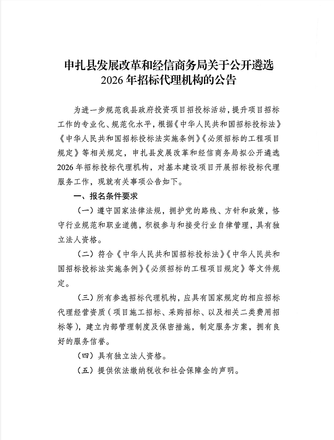 申扎县发展改革和经信商务局关于公开遴选2026年招标代理机构的公告