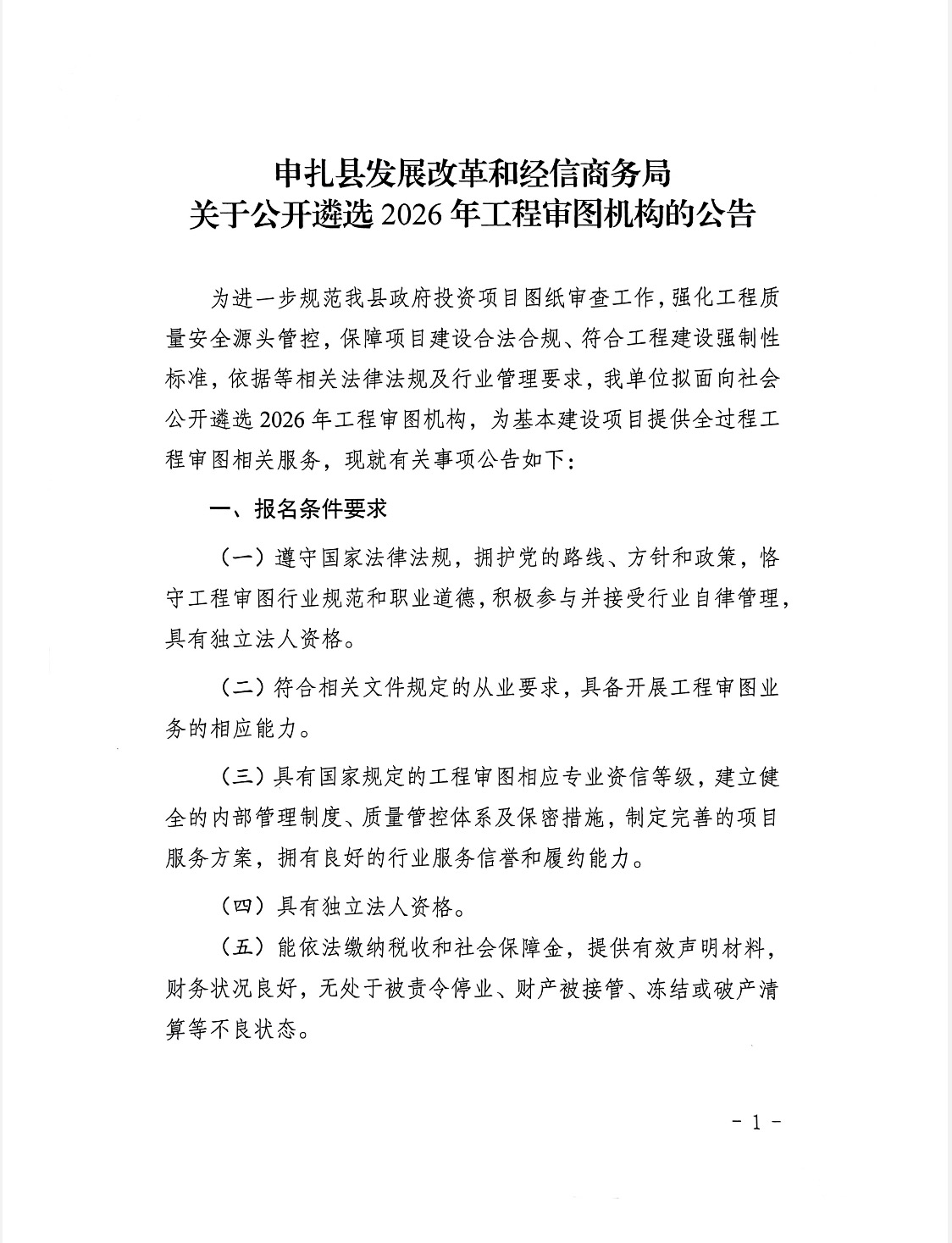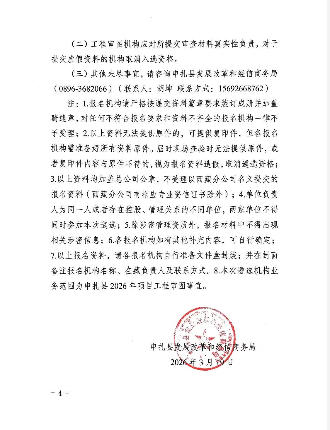 申扎县发展改革和经信商务局关于公开遴选2026年工程审图机构的公告