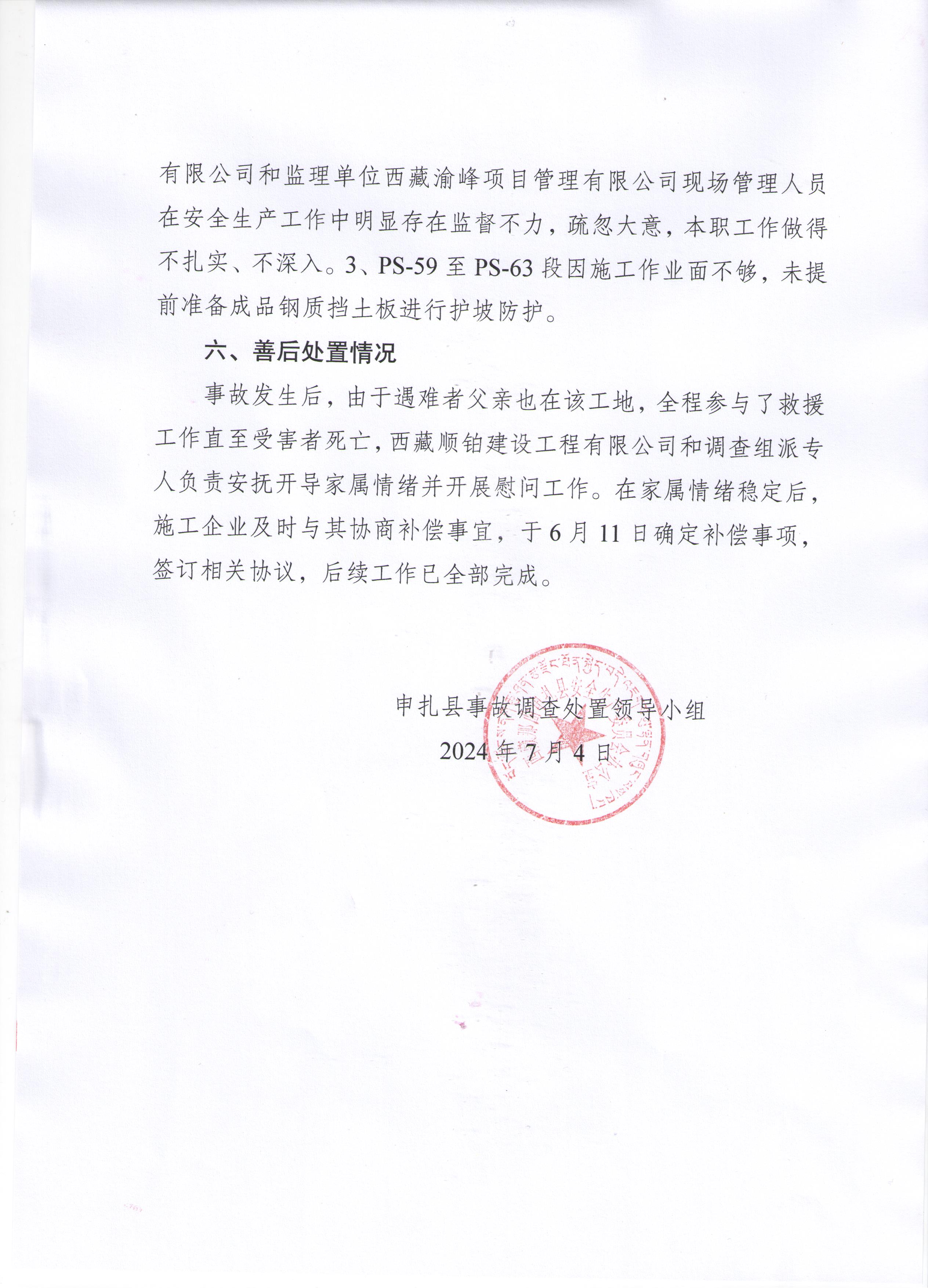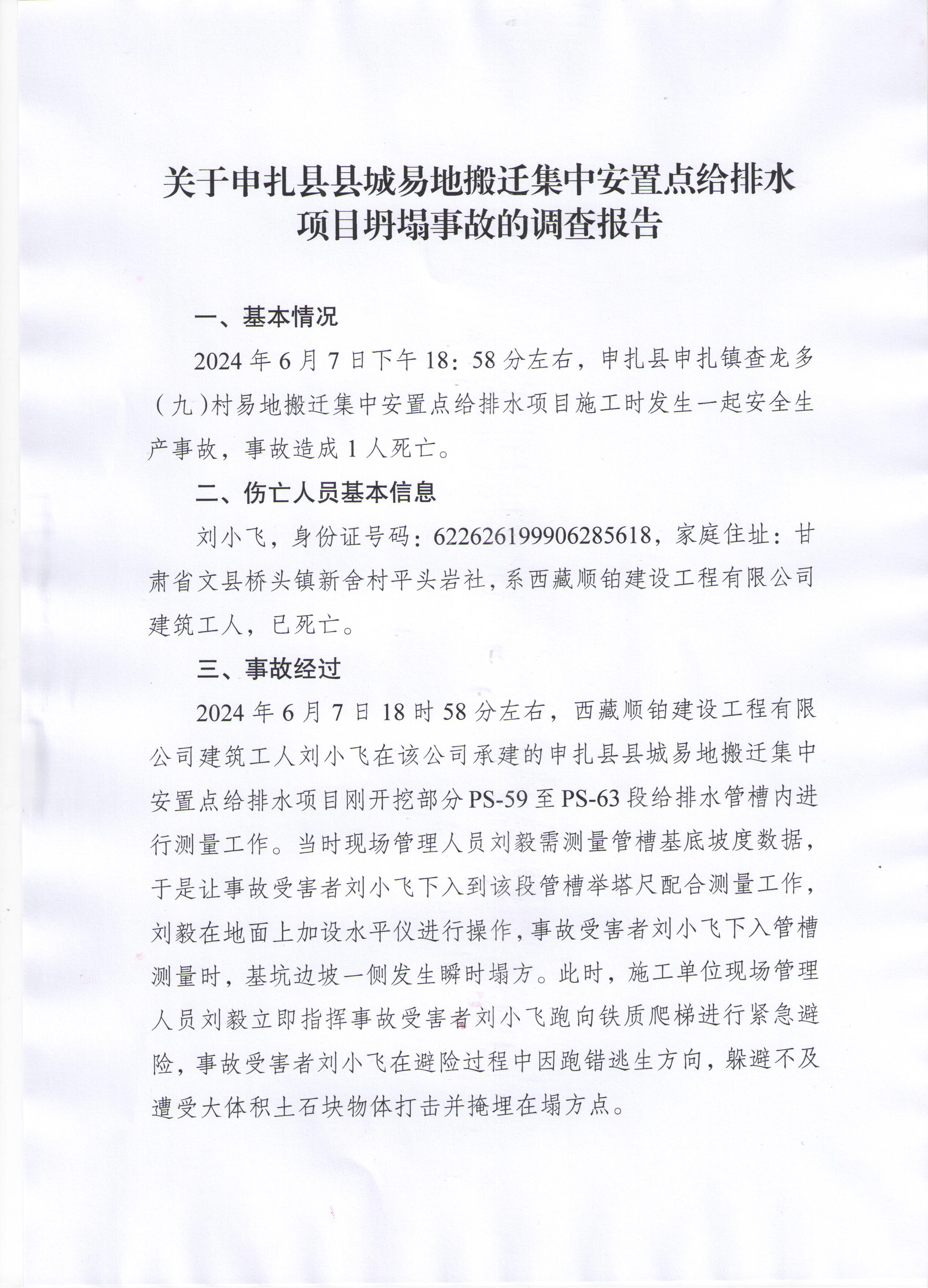 申扎县县城易地搬迁集中安置点给排水项目坍塌事故的调查报告