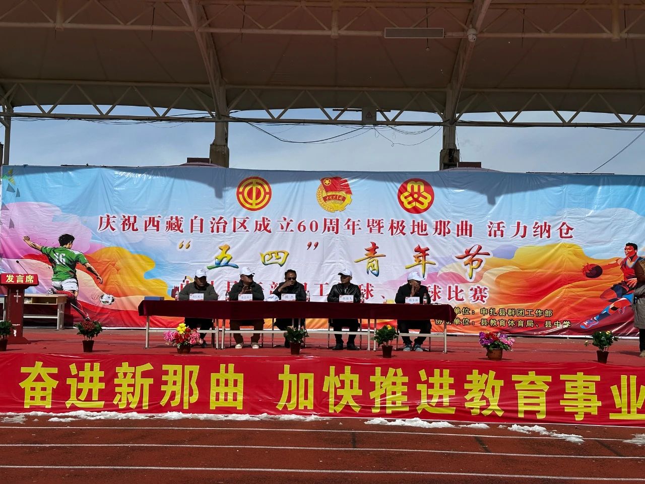 为庆祝西藏自治区成立60周年,深入贯彻党的二十大精神,5月7日,申扎县在县中学体育场举办庆祝西藏自治区成立60周年暨“极地那曲·活力纳仓”五四青年节干部职工足球篮球比赛开幕式,旨在丰富干部职工文体生活,增强团队凝聚力。