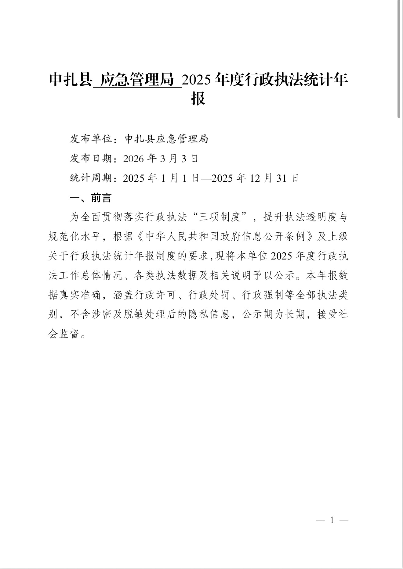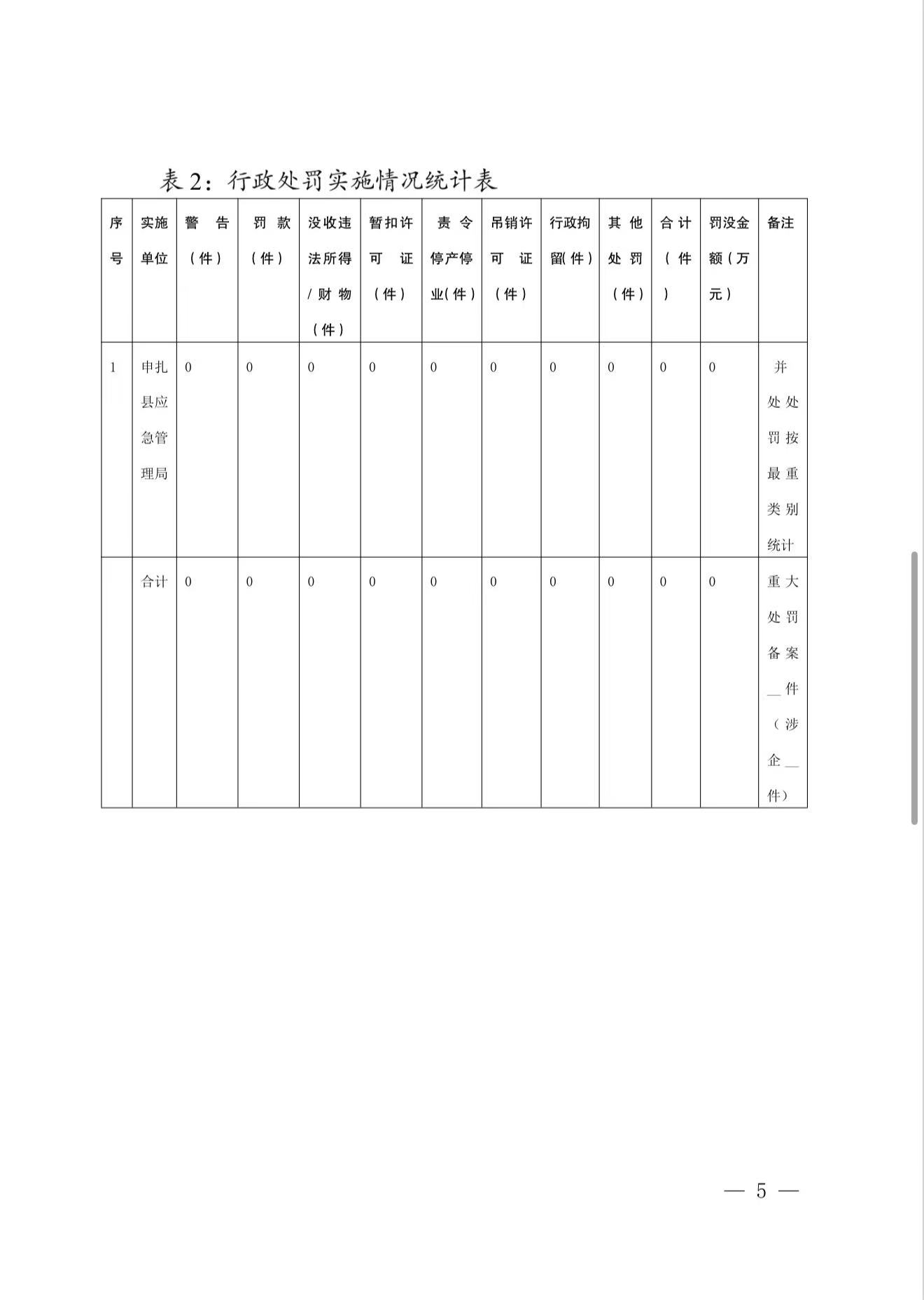 申扎县应急管理局 2025年度行政执法统计年报