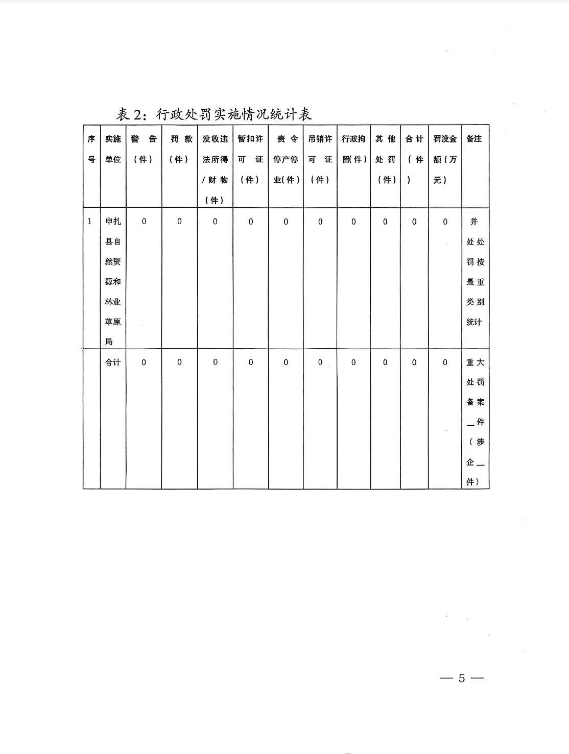 申扎县自然资源和林业草原局2025年度行政执法统计年报