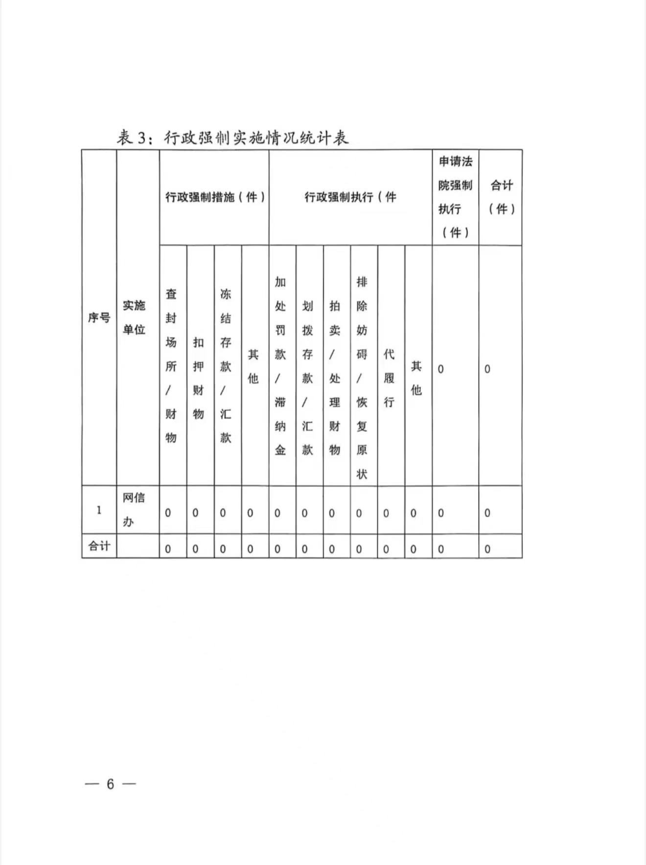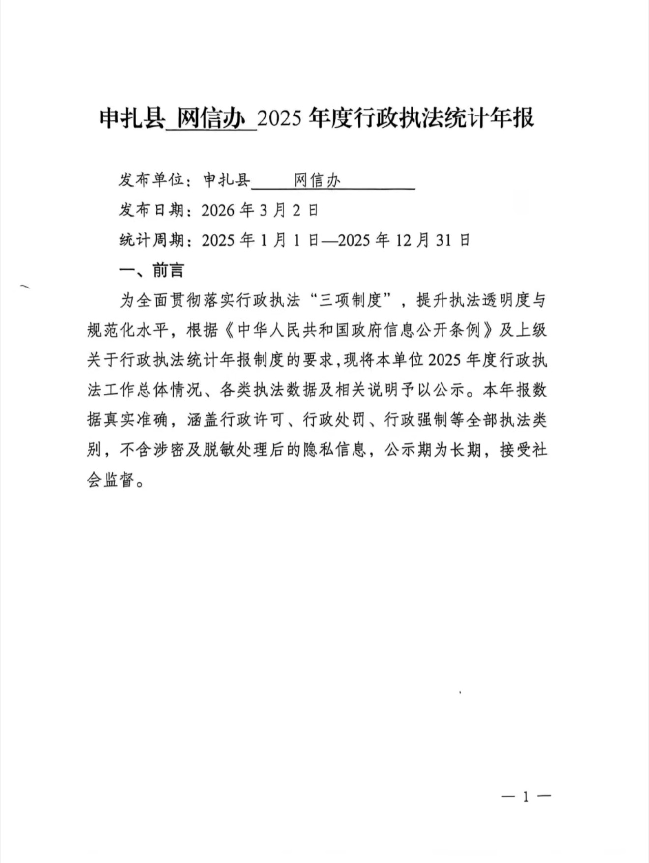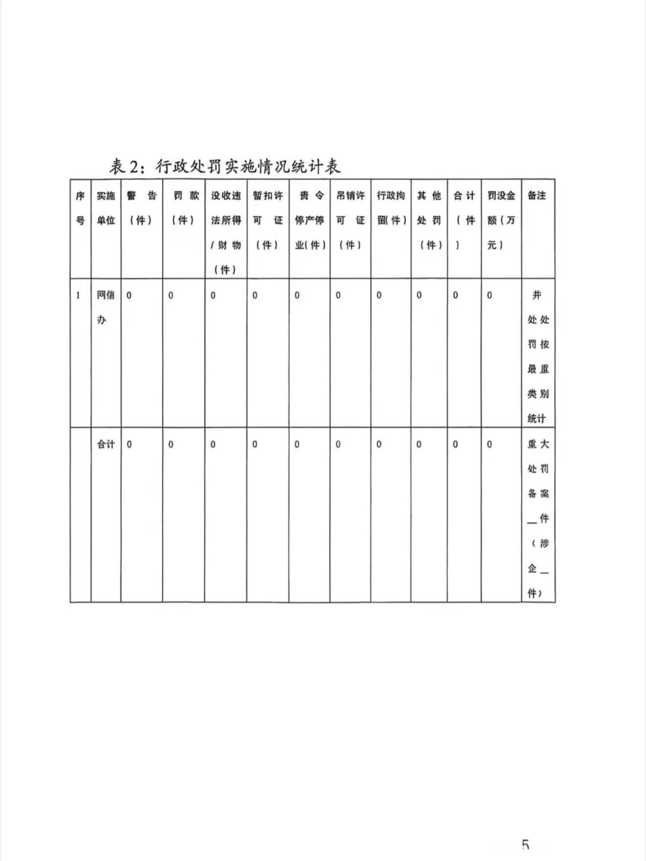 申扎县网信办2025年度行政执法统计表年报