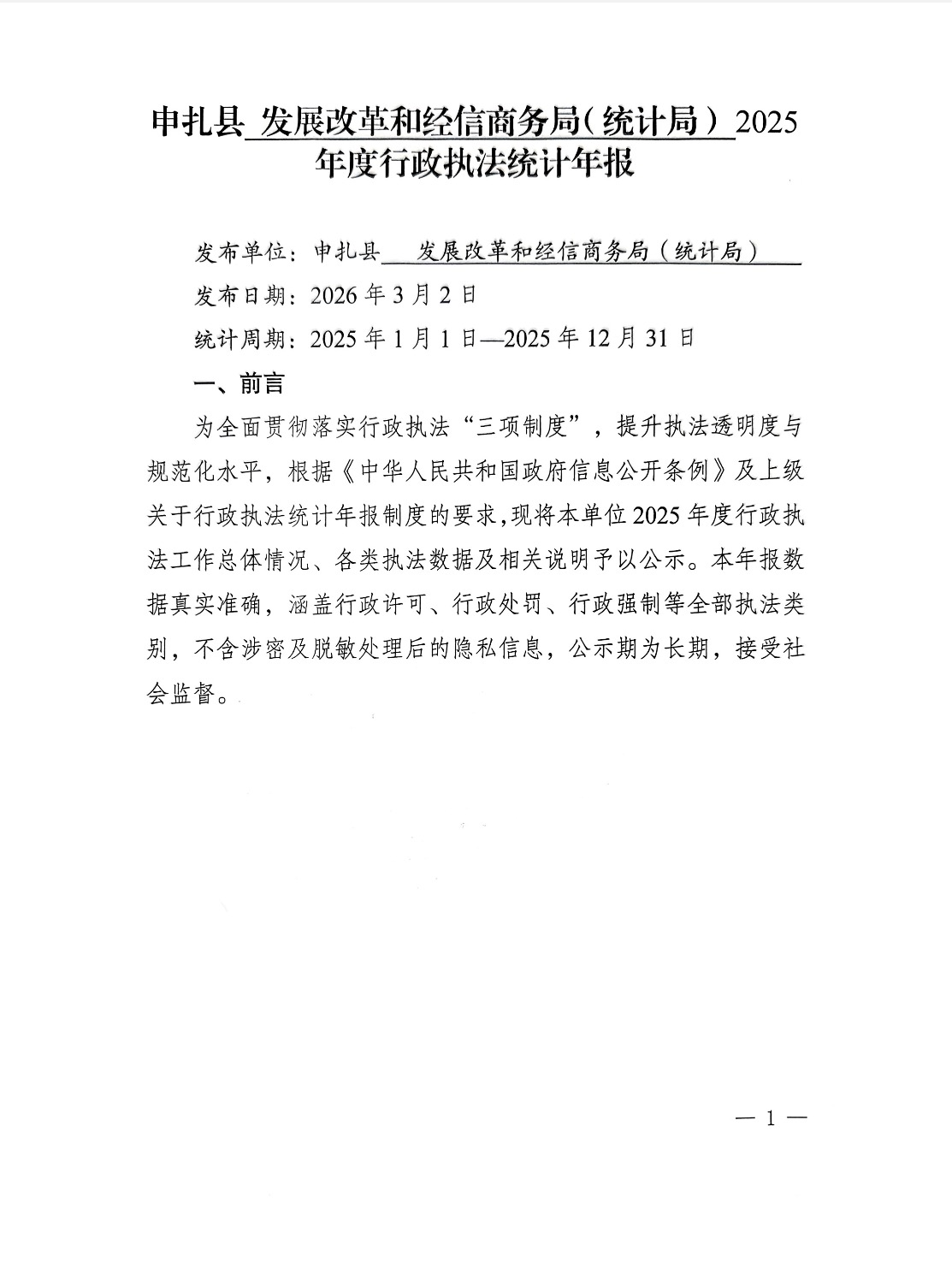 申扎县发展改革和经信商务局(统计局) 2025年度行政执法统计年报